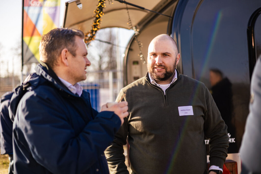 De locatie bood direct uitzicht op waar Bravo gebouwd zal worden. In deze setting zorgde een koffiekarretje en een gezellige vuurkorf voor warme drankjes en een fijne sfeer. Veel bezoekers namen de tijd om rond te kijken, brochures door te nemen en alvast ideeën op te doen voor hun mogelijke toekomst op het Kazernekwartier.